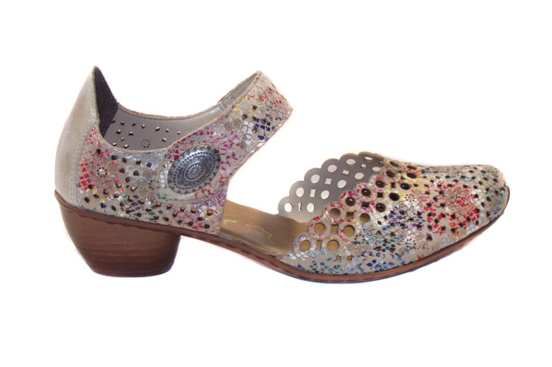 Rieker, depuis 1846, met la technologie au service de votre bien-être. Les modèles « antistress » comme la Chaussure43753 offrent plus d’espace, d’amorti et de légèreté, tout en restant tendance. Son coloris multicolore s’associe facilement à toutes vos tenues, qu’il s’agisse de pantalons, jupes ou robes d’été. Le confort de la semelle et la flexibilité du cuir garantissent une expérience agréable à chaque pas.